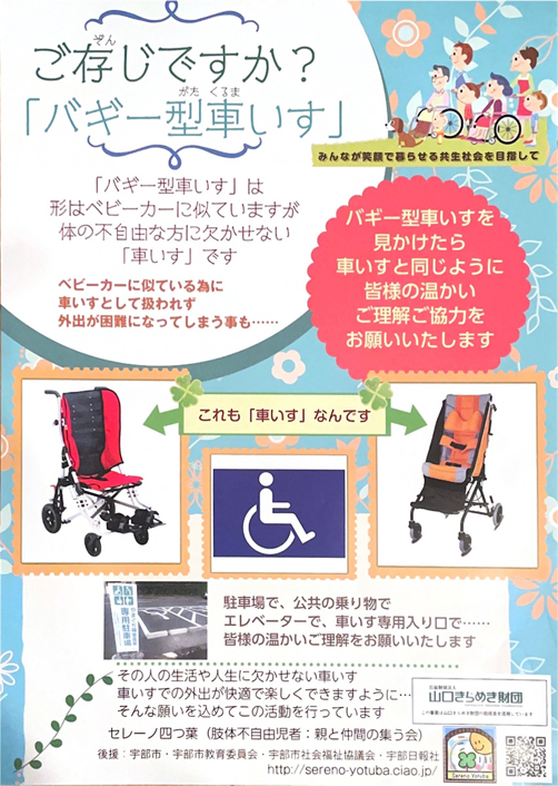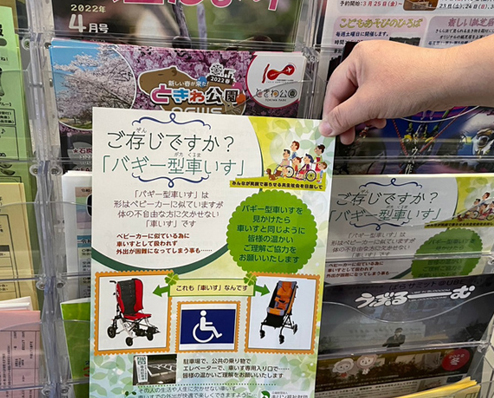 ベビーカーなどと間違われやすい「バギー型車いす」を皆さんに知っていただく事で、「車いす」として適正な福祉的配慮を受ける事ができ、お子さんとの外出がしやすい社会になればと周知活動を行っています