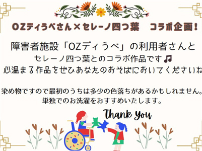 セレーノ四つ葉には保護者やサポーターさんのなかに様々な素敵な作家さんがおられ「手しごとの会」で教えて下さいます。その時間は和気あいあいと穏やかなとても楽しくかけがえのない時間です。